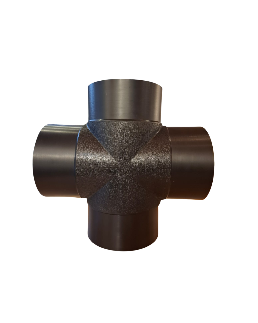 La cruz de termofusión es un accesorio de unión diseñado para crear derivaciones cuádruples en sistemas de tuberías de polietileno de alta densidad (HDPE). Este componente permite la interconexión de cuatro líneas de flujo en un solo punto, garantizando una transición hermética y estructuralmente sólida mediante el proceso de soldadura por termofusión a tope.